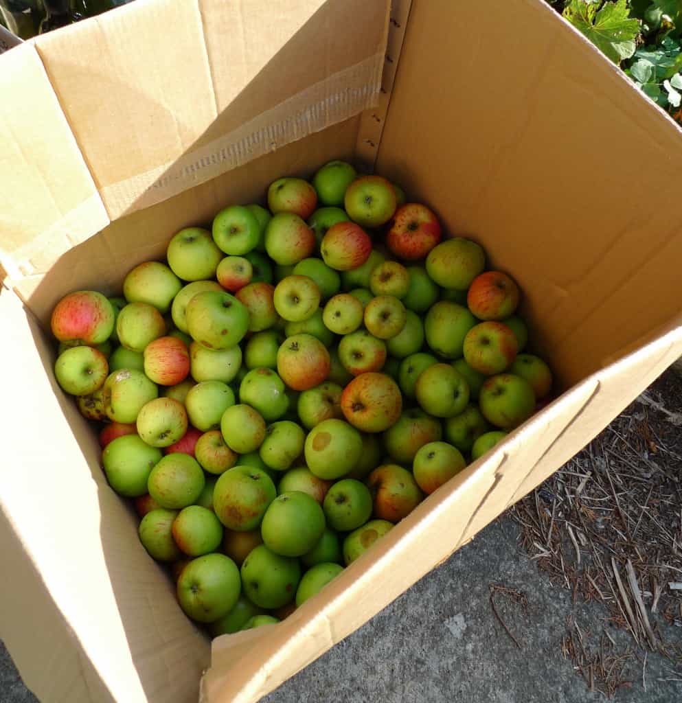 I’d been invited to join in a communal apple pressing party at some friends Karen and John along with other local apple juice lovers . The Venue: A back garden in Wendover, in the heart of the Chilterns. Apple pressing is most definitely a communal activity with several stages to get stuck into before the actual pressing begins. Sorting and combining different varieties to get the right balance of flavour. Then there’s the washing, the chopping and the pulping. When we arrived the back yard was awash with plastic bags, boxes and crates crammed with apples of all sizes and varities – many left there by locals with more apples in their gardens than they could use. Friends and neighbours, happy in the knowledge that they’ll be able to turn up a day or so later to collect a bottle or three of lovingly pressed apple juice.