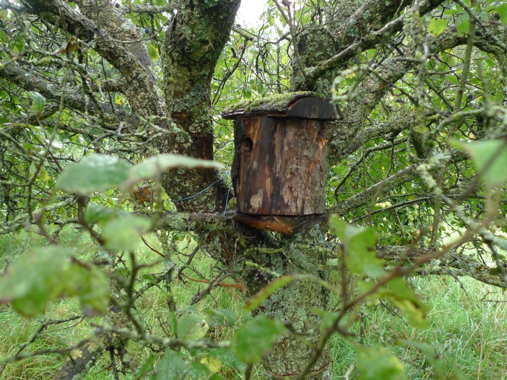 Bob pointed out some baby damson trees – suckers, thrown up from the roots of mature trees growing  on one side of the orchard.  As long as the orchard is not grazed by sheep, these clones will eventually grow into mature trees within 5 or 6 years.  I didn’t know sheep liked eating young damson trees!  Bob explained that putting nesting boxes in the trees encouraged birds to eat the many parasitic insects such as greenflies which live on and around the bark and leaves of the trees.  There is even a plum moth!  A tasty takeaway for a fledgling blue tit hungry for it’s supper.