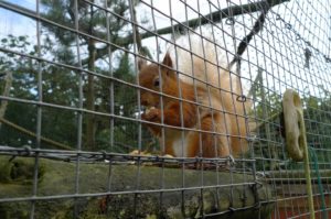 Bob, a retired vet, has lived in the area for over 40 years and as a member of the Westmorland Damson Association and keen fruit tree grower, there isn’t much he doesn’t know about damsons.  His knowledge and enthusiasm not just about damsons, apples and other indigenous  fruit trees, but plants and wildlife, is very impressive. Bob’s large cage with it’s lively pair of red squirrels which have already bred 5 young ones – a practical contribution to reintroducing a native species against a tide of  grey squirels . These five been released into the wild and hopefully there’ll be more to come.  I couldn’t resist taking a picture of them.  They have a plentiful supply of cob nuts from a handy nearby tree.