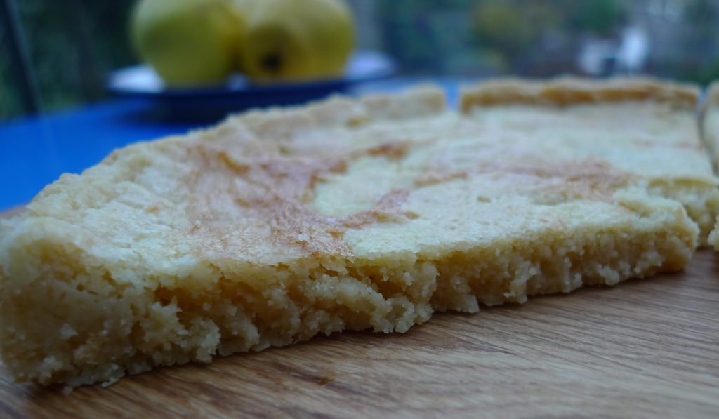 Less cake and more biscuit,  it is the perfect companion for a cup of tea or freshly brewed coffee.  It is quick to make and satisfyingly buttery without being too rich.  I love the way the edges of the cake form themselves as the cake cools down.  I recommend cutting out your slices with a sharp knife as soon as the cake comes out of the oven.